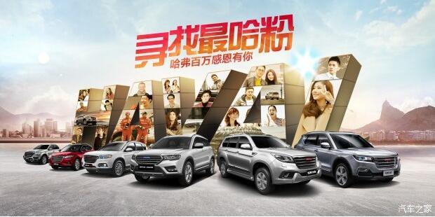 為了感恩廣大哈弗車主和粉絲,2017年2月20日-4月30日期間,哈弗汽車在國內(nèi)啟動“哈弗百萬感恩有你——尋找哈粉”大型活動,向所有的哈弗車主及粉絲征集“老友”、“粉絲”。您可登錄哈弗官網(wǎng)或哈弗SUV平臺進(jìn)行報名,講述您與哈弗的精彩故事,即有機會贏取哈弗H7七折購車權(quán)、4999元旅游基金、哈弗精品等多項大獎。