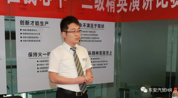 鄭州東錦店的銷售經(jīng)理邵明芳,圍繞汽車銷售分別從預(yù)算、廠家指標(biāo)等方面進行了演講,他的演講條理清晰、切合實際,得到了評委們的一致肯定;新鄭寶馬店的電銷顧問鄭新蕾,演講風(fēng)格清新、形式新穎,不時與臺下評委互動,調(diào)動了整場比賽的氛圍。在這些選手當(dāng)中,絕大多數(shù)對于本次比賽高度重視。例如新鄉(xiāng)哈弗店的售后經(jīng)理李東亮,為了不影響白天的正常工作和晚上家人的休息,專門在賽前把自己關(guān)到賓館,伏案準(zhǔn)備到天亮,第二天正常到公司上班,一連三四天獨自一人在賓館反復(fù)背誦練習(xí)。他對工作的熱情和執(zhí)著地體現(xiàn)在了新鄉(xiāng)站的比賽當(dāng)中。由于準(zhǔn)備充分,李經(jīng)理現(xiàn)場演講效果佳,內(nèi)容深刻,而且感染力強,一舉贏得了當(dāng)場比賽的高。